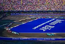 On lap 7, Felipe Massa hit the same wall as Müller, but was able to park the car in a safe spot and his retirement did not affect the race.[17] Few laps later, Lotterer clipped a wall on the exit of turn 3, which stuck an advertising banner into the bodywork of his car, which created a cloud of smoke behind him. The bodywork eventually fell off, but the car was already damaged, which forced Lotterer to pit and subsequently retire from the race.[16][18] Another incident happened on lap 19 and it involved Nyck de Vries, who tried to defend from António Félix da Costa. De Vries used FanBoost on the main straight and could not brake into the first corner, hitting Frijns in the process. Frijns was able to continue, de Vries was not.[17]