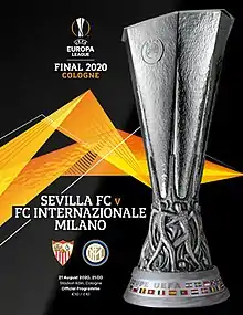 The 2020 UEFA Europa League final was the final match of the 2019–20 UEFA Europa League, the 49th season of Europe's secondary club football tournament organised by UEFA, and the 11th season since it was renamed from the UEFA Cup to the UEFA Europa League. It was played at the RheinEnergieStadion in Cologne, Germany on 21 August 2020, between Spanish side Sevilla and Italian side Inter Milan. The match was held behind closed doors due to the COVID-19 pandemic in Europe.[5]