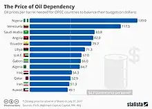 Oil revenue is a significant government income for several oil producing countries. Low oil price put pressure on state financials.[51][52]