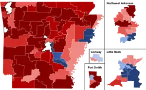 Republican: 50–60% 60–70% 70–80% 80–90% 90–100% Democratic: 40–50% 50–60% 70–80% 80–90% 90–100% | |||||||||||||||||||||||||