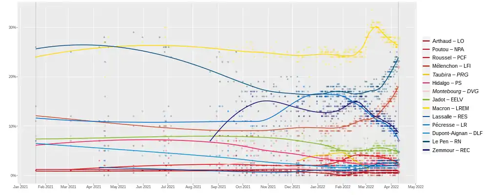- ↑ "POLITICO Poll of Polls — French polls, trends and election news for France". POLITICO. Archived from the original on 1 February 2022. Retrieved 1 February 2022.