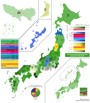 | Liberal Democratic Party | 18,256,245 | 34.43 | 18 | 20,603,298 | 38.74 | 45 | 63 | 56 | 119 | +6 | ||
