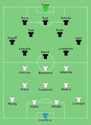 - 1 2 3 "Real Madrid 2–0 Frankfurt: Five-star Madrid triumph in Helsinki". UEFA.com. Union of European Football Associations. 10 August 2022. Retrieved 10 August 2022.