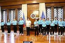 The Philippines women's football team pay a courtesy visit to President Bongbong Marcos at Malacañang Palace following their victory at the 2022 AFF Women's Championship.