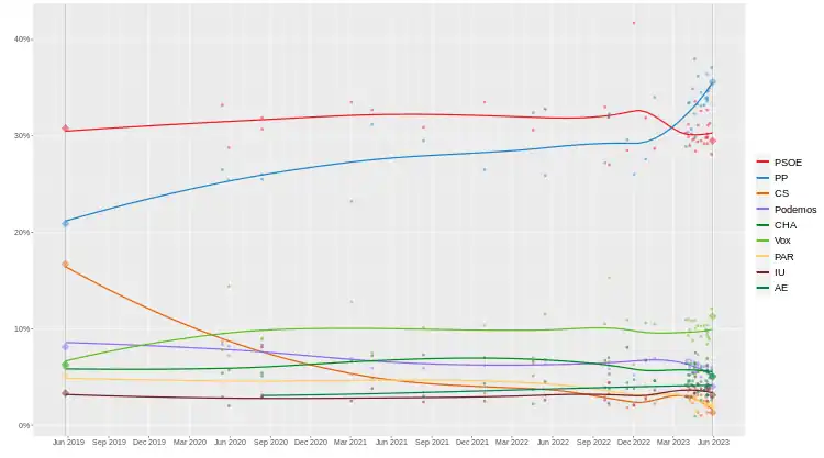 - ↑ "ElectoPanel Autonómico (6M)". Electomanía (in Spanish). 6 May 2023.