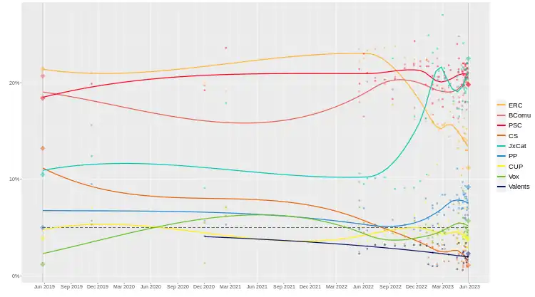 - 1 2 "Trias va primero en Barcelona, pero los indecisos podrían dar la victoria al PSC". El Confidencial (in Spanish). 16 May 2023.