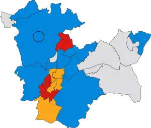 Last election 17 seats, 54.8% 5 seats, 21.9% 5 seats, 16.9%