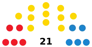 The following table lists party control in the Island Cabildos.[1] Gains for a party are displayed with the cell's background shaded in that party's colour.