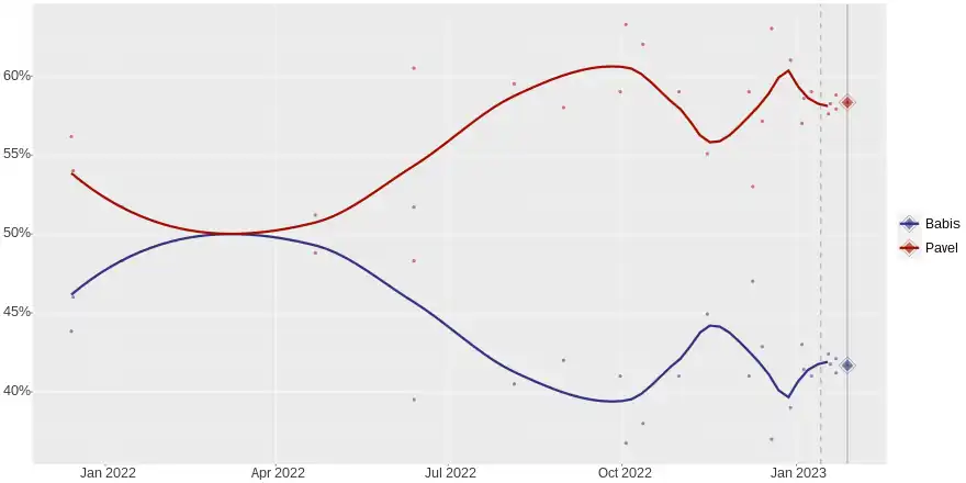 - 1 2 "Exkluzivní projekce naznačuje, jak dopadne 2. kolo. Kolik voličů získá Babiš od Nerudové?". cnn.iprima.cz (in Czech). Retrieved 17 January 2023.