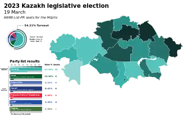 - ↑ "On the preliminary results of the turnout of citizens at 22.10". www.election.gov.kz. 19 March 2023. Retrieved 27 March 2023.