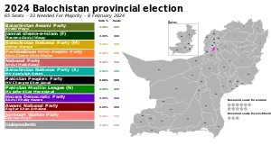 Provincial elections are scheduled to be held in Balochistan on 8 February 2024 to elect a new provincial legislature. On 5 August 2023, after the approval of the results of the 2023 digital census by the Council of Common Interests headed by Prime Minister Shehbaz Sharif, elections have been delayed for several months, as new delimitations will be published on 14 December 2023.[1][2] On 2 November 2023, the Election Commission of Pakistan announced, in agreement with the President of Pakistan, Arif Alvi, that the elections will be held on 8 February 2024.[3] This election will be held concurrently with nationwide general elections and other provincial elections.