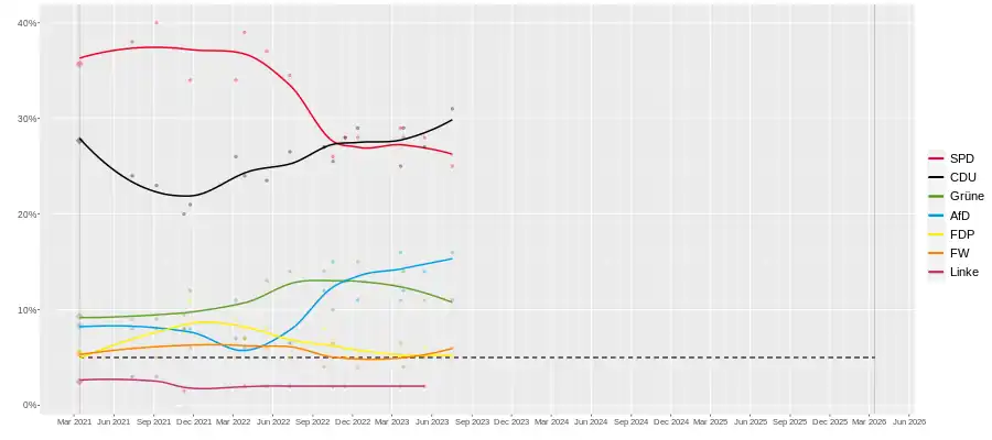 SPD | CDU | Grüne | AfD | FDP | FW | Linke | Others | Lead |