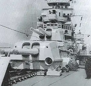 This gun was limited to two superfiring twin-mount turrets forward and aft on the heavy cruisers Trento and Trieste during World War II.