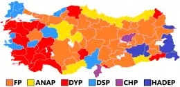 This is a list of the 550 Members of Parliament elected in the 1995 general election held in Turkey. The MPs are listed by province. Turkey uses a D'Hondt proportional representative system to elect Members of Parliament. These MPs formed the 20th Parliament of Turkey. An overview of the parliamentary composition is shown in the table below.
