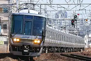 The 223 series (223系, 223-kei) is a suburban electric multiple unit (EMU) train type operated by the West Japan Railway Company (JR-West) in the Kansai region, Chūgoku region and Shikoku region of Japan. Multiple batches of the model have been built with varying differences (particularly motor output control), although the overall general appearance remains similar.