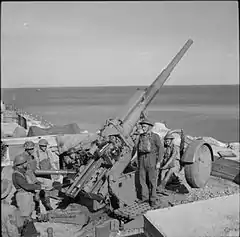 Mobile 3.7-inch HAA gun deployed at White Rock Battery, Gibraltar, November 1941.