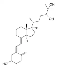24,25-Dihydroxycholecalciferol, also known as 24,25-dihydroxyvitamin D3 and (24R)-hydroxycalcidiol (abbreviated as 24(R),25-(OH)2D3),[1] is a compound which is closely related to 1,25-dihydroxyvitamin D3, the active form of vitamin D3. Like vitamin D3 itself and calcifediol (25-hydroxyvitamin D3), it is inactive as a hormone both in vitro[2] and in vivo.[3] It was first identified in 1972 in the laboratory of Hector DeLuca and Michael F. Holick.[4]