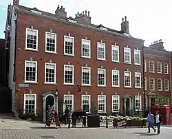 The houses were built for Francis Gawthern in 1733[2] who built them on the site of Vault Hall, a former mansion house of the Plumptre family. Gawthern moved into number 26 in 1734.[3] The gates and railings on the forecourt were also erected at the same time and are separately Grade II* listed.[4]
