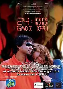24 Gadi Iru (lit: 24 hours) is a 2014 Maldivian suspense thriller film directed by Yoosuf Shafeeu and Mohamed Rasheed. Co-produced by Ismail Shafeeq and Mohamed Rasheed under Hi-Raid Productions, the film stars Yoosuf Shafeeu, Fathimath Azifa and Sara Mayrhuber in pivotal roles. The film was released on 28 August 2014.[1] The film revolved around a romantic relationship between a girl diagnosed with mental illness and her psychiatrist.[2] Production of the film began in 2010, though it was theatrically released four years later.[2]