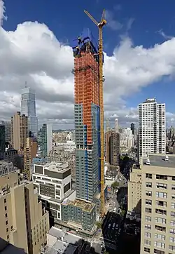 252 East 57th Street is a mixed use modernist style residential skyscraper in Midtown Manhattan, New York City, developed by the World Wide Group and Rose Associates, Inc. Construction started in 2013. The building is part of a luxury residential corridor along 57th Street called Billionaires' Row.[4] The residential tower rises to 712 feet (217 m) with condominiums starting on the 36th floor, and is the 63rd tallest building in New York. The complex also houses two new schools and 78,000 square feet (7,200 m2) of retail space, in addition to a Whole Foods Market. The residential tower and additional retail portions were anticipated to open in late 2016,[5][6] and the project was largely complete by 2017.
