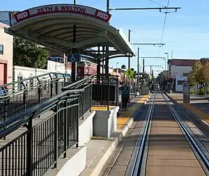 25th & Welton station (sometimes styled as 25th•Welton) is a RTD light rail station in Denver, Colorado, United States. Originally operating as part of the D Line, the station was opened on October 8, 1994, and is operated by the Regional Transportation District.[4][5] Located in the Five Points neighborhood, it is the stop closest to the Blair-Caldwell African American Research Library. The January 14, 2018, service changes introduced the L Line, which now serves this station in place of the D Line.[6]