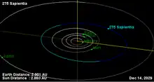 - ↑ "275 Sapientia". JPL Small-Body Database. NASA/Jet Propulsion Laboratory. Retrieved 11 May 2016.