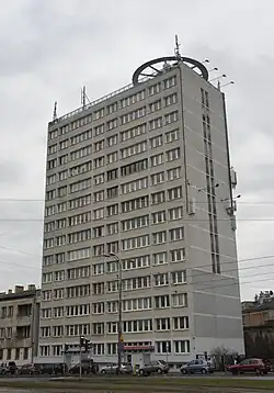 2B Jerzego Waszyngtona Avenue Skyscraper is the modernist residential skyscraper in the city of Warsaw, Poland, located at 2B Jerzego Waszyngtona Avenue. It was designed by architect Marek Leykam, and built in 1963. It is an early example of modernist architecture in Poland, and upon construction, it was the first skyscraper built on the right bank of Vistula river in Warsaw, and the first building in the city, with at least one wall with fully glass-covered elevation.[1][2]