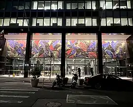 2 Broadway murals are a pair of untitled decorative mosaic murals by the American artist Lee Krasner completed in 1959 and located at 2 Broadway in Lower Manhattan, New York.[1] Both murals are abstract with colorful planes made from glass tesserae in green, gold, black, and crimson, echoing the dynamism of Krasner's Abstract Expressionist painting style. The larger mural, installed above the Broadway entrance, is 86 feet by 12 feet, while the smaller one is 15 feet by 15 feet and placed above the entrance facing Broad Street. They were commissioned in 1958 by the New York-based real estate company Uris Brothers, which was headquartered at and owned the office building at 2 Broadway. Krasner designed and completed the murals in collaboration with her nephew, Roland Stein.