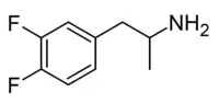3,4-Difluoroamphetamine (DFA) is a substituted amphetamine which has been sold as a designer drug. It has relatively weak activity as a serotonin releasing agent with only around 1/4 of the affinity for the serotonin transporter compared to MDA, but its activity at other targets has not been studied.[1][2]