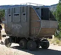 In summer 2006, Columbia placed the film in turnaround, and the project was acquired by Relativity Media. Crowe and Bale were cast as the main characters, and Relativity began seeking a distributor for the film.[8] By September, Lions Gate Entertainment signed on to distribute the film.[9] Later in the month, Peter Fonda, Gretchen Mol, Dallas Roberts, Ben Foster, and Vinessa Shaw were cast. Filming was slated to begin on October 23, 2006, in New Mexico.[10] On the first day of filming, a rider and his horse were seriously injured in a scene when the horse ran directly into a camera-carrying vehicle instead of veering off as planned. The rider was hospitalized, and the horse had to be euthanized on the set. The animal's death prompted an investigation from the American Humane Association.[11] By November, the AHA concluded its investigation, finding that the horse did not respond accordingly due to having received a dual training approach and the rider not being familiar with the mount. The organization recommended no charges against the producers.[12] Principal photography took place in and around Santa Fe, Abiquiú, and Galisteo.[13] The Bonanza Creek Ranch represented the film's town of Bisbee as a "kinder, gentler frontier town" while Galisteo was set up to be Contention (now a ghost town), a "much rougher, bawdier, kind of sin city".[14] Others locations were the scenic Diablo Canyon and the Gilman Tunnels (35°44′03″N 106°45′53″W / 35.734081°N 106.76475°W / 35.734081; -106.76475) along New Mexico State Road 485. Filming concluded on January 20, 2007.[13]