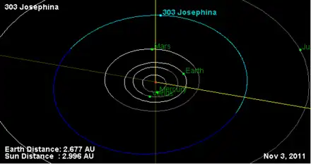 1. 1 2 "303 Josephina". JPL Small-Body Database. NASA/Jet Propulsion Laboratory. Archived from the original on 15 September 2020. Retrieved 11 May 2016.