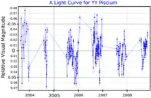 - 1 2 3 Rimoldini, L.; et al. (December 2012), "Automated classification of Hipparcos unsolved variables", Monthly Notices of the Royal Astronomical Society, 427 (4): 2917–2937, arXiv:1301.1545, Bibcode:2012MNRAS.427.2917R, doi:10.1111/j.1365-2966.2012.21752.x, S2CID 119191320.