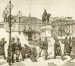 ![]() The municipal guard attack the rebels in the city hall | |||||||