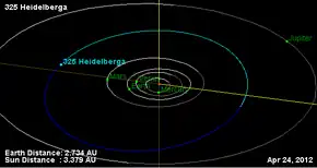 - 1 2 Yeomans, Donald K., "325 Heidelberga", JPL Small-Body Database Browser, NASA Jet Propulsion Laboratory, retrieved 11 May 2016.
