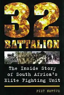 32 Battalion: The Inside Story of South Africa's Elite Fighting Unit is a book written by Piet Nortje. For his entire adult life he had been a soldier. Half of his military career he spent with 32 Battalion. During early 1993 he volunteered to compile the story of 32 Battalion. He was inspired to do this during informal discussions with two former 32 Battalion officers, Commandant Werner Sott, outgoing OC 7 SA Infantry Battalion, and his successor, Commandant Daan van der Merwe.[1] They informed Nortje that someone else already approached to do so, but even though Nortje was advised to drop the idea, he started to collect as much information as possible on 32 Battalion.
