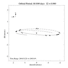 - 1 2 3 4 5 Marchis, Franck; P. Descamps; J. Berthier; D. hestroffer; F. vachier; M. Baek; et al. (2008). "Main Belt Binary Asteroidal Systems With Eccentric Mutual Orbits". Icarus. 195 (1): 295–316. arXiv:0804.1385. Bibcode:2008Icar..195..295M. doi:10.1016/j.icarus.2007.12.010. S2CID 119244052.