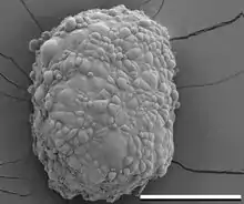 Spheroids are a type of three-dimensional cell modeling that better simulate a live cell's environmental conditions compared to a two-dimensional cell model, specifically with the reactions between cells and the reactions between cells and the matrix.[32] Spheroids are useful in the study of changing physiological characteristics of cells,[33] the difference in the structure of healthy cells and tumor cells, and the changes cells undergo when forming a tumor.[34] Spheroids co-cultured with tumor and healthy cells were used to simulate how cancerous cells interact with normal cells.[35] Spheroids can also be co-cultured with fibroblasts to mimic tumor-stroma interaction.[36] Spheroids can be grown with a few different methods. One common method is to use low cell adhesion plates, typically a 96 well plate, to mass-produce spheroid cultures, where the aggregates form in the rounded bottom of the cell plates.[31][37] Spheroids can also be cultured using the hanging drop method[38] involving forming cell aggregates in drops that hang from the surface of a cell plate.[32] Other methods under investigation include the use of rotating wall vessel bioreactors, which spins and cultures the cells when they are constantly in free fall and forms aggregates in layers[39] Recently, some protocols have been standardized to produce uniform and reliable spheroids.[40] Researchers had also explored standardized, economical and reproducible methods for 3D cell culture.[41] To improve reproducibility and transparency in spheroid experiments, an international consortium developed MISpheroID (Minimal Information in Spheroid Identity).[42]