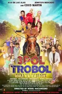3pol Trobol: Huli Ka Balbon! (transl.Triple Trouble: Got You Balbon!) is a 2019 Philippine action-comedy-romance film directed by and starring Coco Martin under his real name Rodel Nacianceno, alongside Jennylyn Mercado and Ai-Ai delas Alas.[2]