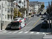 ![]() A westbound Muni route 45 trolleybus at Van Ness Avenue in April 2022 | ||||