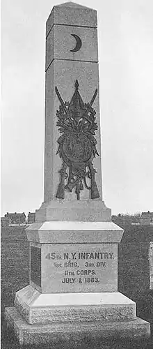 1863-07-01 Gettysburg Monument 39°50′26″N 77°14′08″W / 39.840527°N 77.235692°W / 39.840527; -77.235692 (1863-07-01 Gettysburg Monument 45th NY)