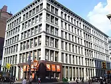 462 Broadway (also known as the Mills & Gibb Building, 120-132 Grand Street and 30 Crosby Street) is a commercial building on Broadway between Crosby and Grand Streets in the SoHo neighborhood of Lower Manhattan, New York City Featuring polished red granite on the ground floor, it was built of cast iron in the French Renaissance style in 1879-1880 to a design by John Correja.