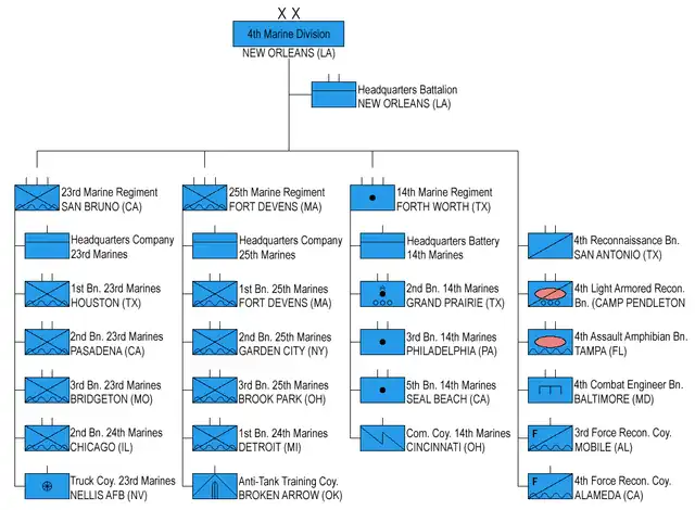 - ↑ "4th Marine Division, U.S. Marine Corps Forces Reserve". Marines: The Official Website of the Marine Corps Reserve. Archived from the original on October 19, 2021. Retrieved January 5, 2019.