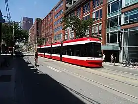 The 514 Cherry was a streetcar route of the Toronto streetcar system in Toronto, Ontario, Canada, that operated from June 19, 2016,[1][2] until October 7, 2018.[3] The 514 operated through the financial district and downtown Toronto between Dufferin Gate Loop and the Distillery Loop.[1] It used to supplement with the 504 King service along King Street, specifically to the dense residential areas in Liberty Village,[4] the Canary District and the Distillery District. The City of Toronto's "King Street Visioning Study" proposed a transit and pedestrian corridor through which this route would operate.[5]