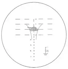 The sights are optical; three types of different optical sights exist (Kr, D and NE), of which two (Kr and D) share the same reticle; the NE sight has a stadiametric rangefinder reticle.[2] There's provision for illuminating the reticle and the stadia marks in the NE sight.