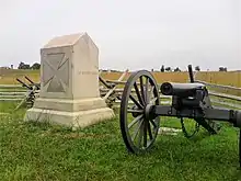 ![]() 5th Massachusetts Battery Monument on the Gettysburg Battlefield near the Peach Orchard | |