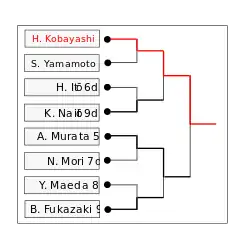 • "No." represents the bracket position of the player in their respective block and "Rank/Title" represents the rank or titles held by the player when the original bracket finalized. A dan/ grading system is used for ranking players. The number in parentheses after each player's name represents the number of times said player has appeared in the main tournament.[5]