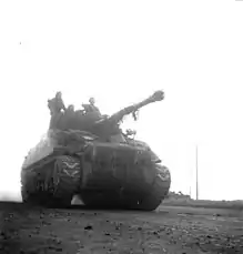 After this battle, the division was withdrawn for rest and maintenance. It was reassigned from U.S. IV Corps to direct command by the U.S. Fifth Army to enable the Army commander, Lieutenant General Mark W. Clark, to coordinate the division's advance more closely with that of U.S. II Corps.[48] In addition, the division was heavily reinforced with artillery and taking Combat Command B, an armoured brigade from U.S. 1st Armored Division, under command.[lower-alpha 10] The division's major task became that of thrusting north towards Bologna covering the flank of the U.S. 34th Division. Combat Command B was to advance on Route 64, the 24th Guards Brigade along the Setta Valley road, with 11th and 12th Bdes covering the high ground between the two. Opposing the advance was the 16th SS Panzer Grenadier Division.[49] By 25 October the division had waded the Setta Creek and taken Hill 501 below Mt. Sole, but the Guards Bde attack on Mt. Sole was halted by torrential rains.[50] The following day the continuing rains had turned to floods, isolating the division elements on Hill 501 and suspending all air support from U.S. XXII Tactical Air Command.[51][52] Mt. Sole was not attacked again and the division was returned to U.S. IV Corps command on 4 November.[53] As winter set in, the U.S. Fifth Army entered a period of static winter campaigning patrolling from fixed defensive positions until February 1945.[54]