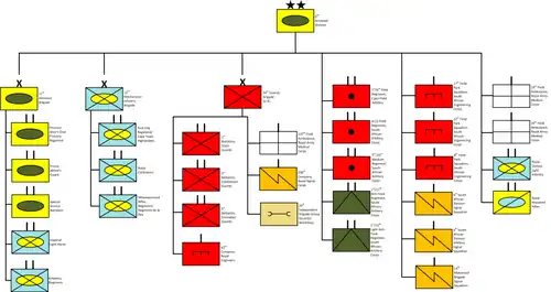 | Division Artillery: | Commander Divisional Artillery: Col J.N. Bierman[77] | Commander Divisional Artillery: Brig J.N. Bierman[78] |
