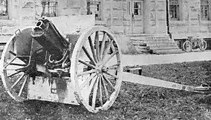 The 75 mm gun M1916 was a US Army field artillery piece used during and after World War I. It was used as an anti-aircraft gun as well as a field piece. It originated as the 3-inch gun M1913, which was soon modified to the 3-inch gun M1916, which was later altered to the subject weapon.[2]