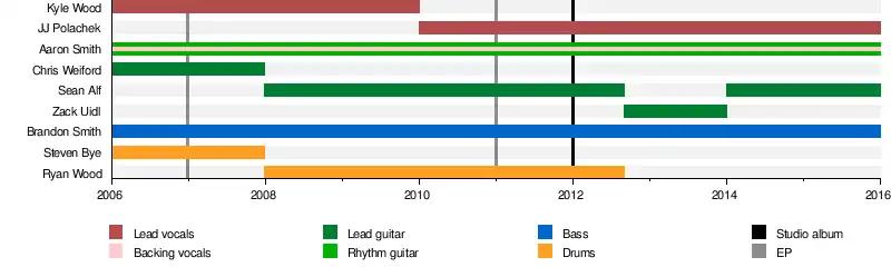 | Past members | Kyle Wood Ryan Wood Steven Bye Zack Uidl Chris Weiford |